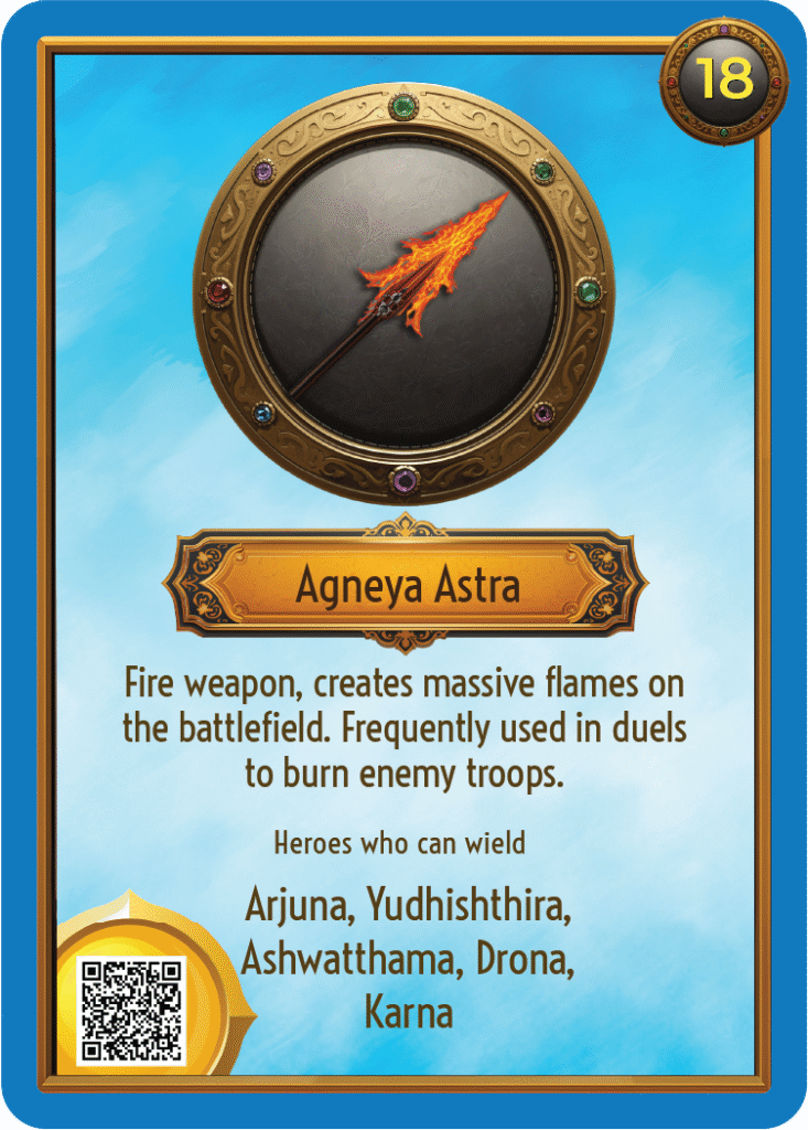 The game unfolds through five dynamic dimensions — Armies, Warriors, Astras, Shastras, and Events — each shaping strategy, storytelling, and skill. Together, they bring the epic battle to life, building critical thinking, decision-making, and moral reflection as players experience the mind, might, and meaning of the Mahabharata.