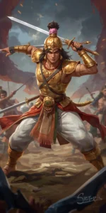 Shalya, king of Madra and maternal uncle of Nakula and Sahadeva, was a powerful warrior tricked into joining the Kauravas by Duryodhana’s deception. Initially intending to support the Pandavas, he reluctantly remained loyal to the Kauravas. Renowned for his skill with the mace and chariot warfare, Shalya also had a sharp tongue and often mocked Karna while serving as his charioteer, undermining his confidence in the final duel with Arjuna. On the 18th day of the Kurukshetra War, Shalya was made commander of the Kaurava army after Karna’s death but was slain in combat by Yudhishthira, fulfilling destiny. Shalya symbolizes misplaced loyalty and the tragedy of dharma compromised by deception.