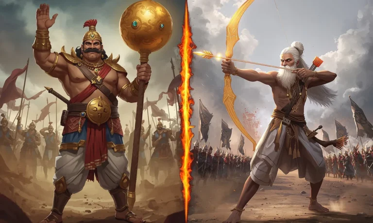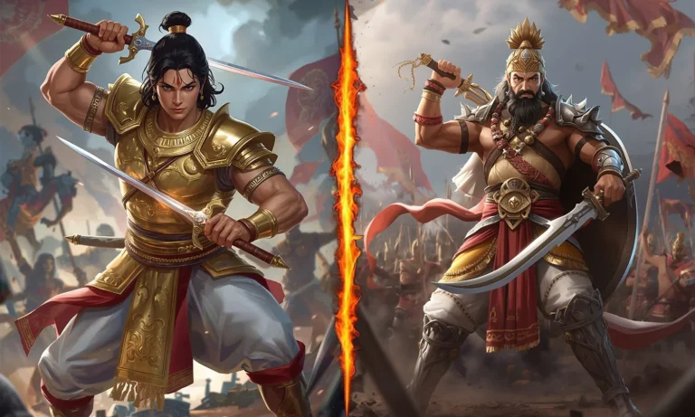 Explore the legendary events that shaped the fate of heroes and kingdoms during the Mahabharata’s Kurukshetra War. Each featured battle and encounter on this page highlights dramatic confrontations between mighty warriors—showcasing courage, strategy, sacrifice, and destiny. Immerse yourself in detailed accounts of these epic clashes and experience the pivotal moments that changed the course of India’s greatest epic.